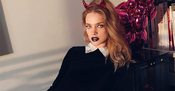 Рожки, черная помада и тени с глиттером: Наталья Водянова в образе сексуального чертенка