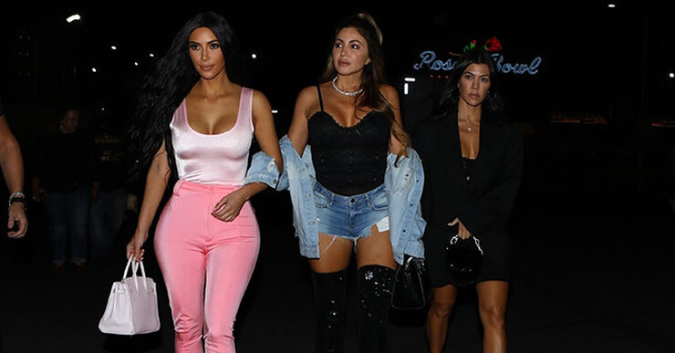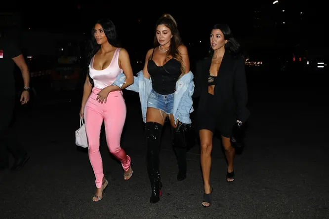 Девушка явилась с сестрой Кортни и подругой Ларсой Пиппен — все были одеты максимально откровенно и сексуально. Ким выбрала розовые блестящие брюки Balenciaga и обтягивающий топ такого же цвета, подчеркнув свою точеную фигуру в форме песочных часов. А вот Кортни, по сравнению с сестрой, предпочла черный наряд: кружевное бра, велосипедки и оверсайз-жакет. Поклонники ликуют — такое яркое появление означает, что супруги Кардашьян-Уэст и Картер-Ноулз могут снова стать друзьями.