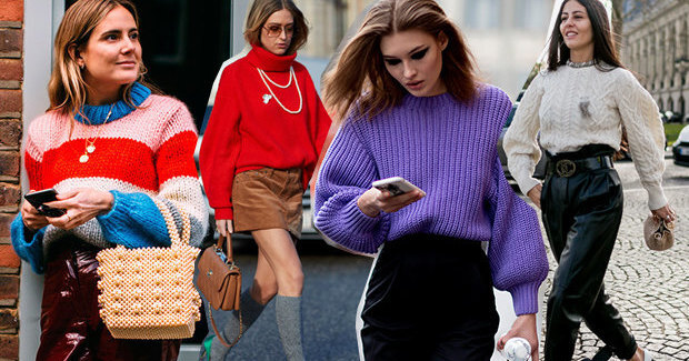 С чем носить зимний свитер весной: 17 образов от звезд стритстайла