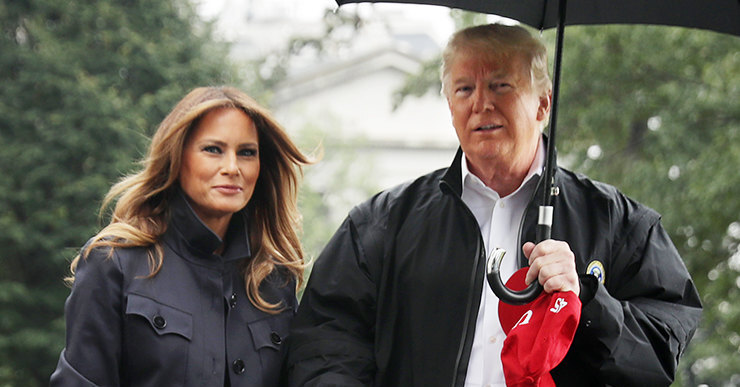 Пока недоброжелатели упорно разводят Дональда и Меланию Трамп, супруги продолжают появляться на публике вместе и ведут себя как влюбленная пара. Судите сами, вчера президент США и его жена попали в объектив фотографов на фоне лужайки у Белого дома. Супруги держались за руки, не скрывая улыбок, и Трамп бережно прятал свою спутницу под зонтом от накрапывающего осеннего дождя.