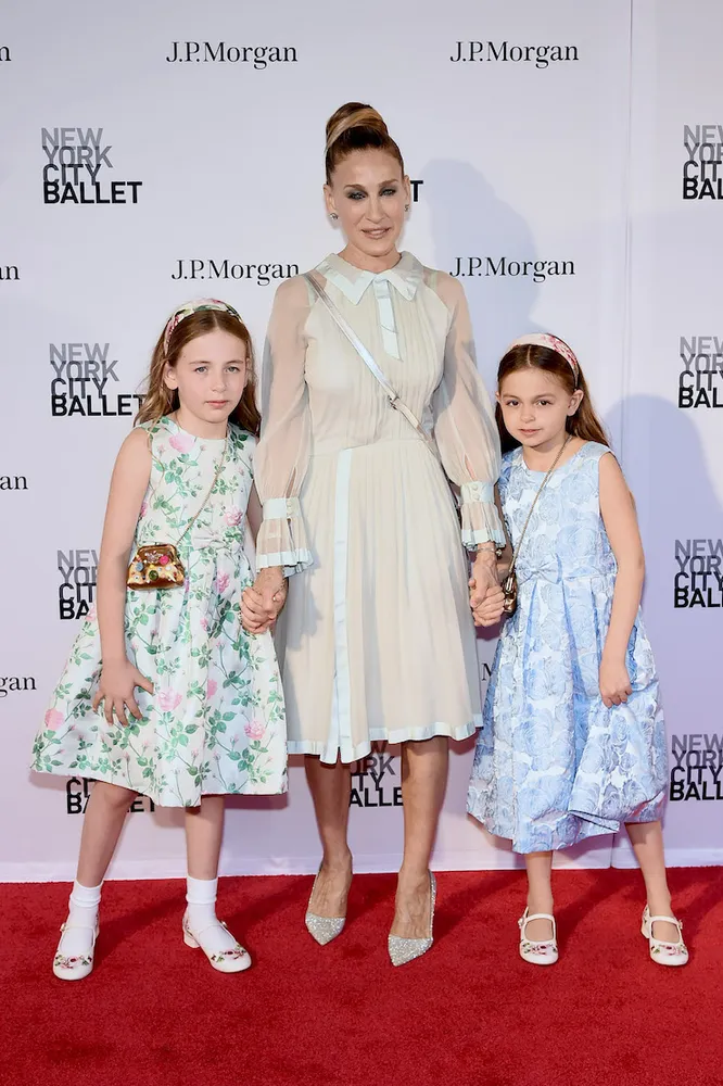 Сара Джессика Паркер нечасто выходит в свет с семьей (у актрисы трое детей, которых она воспитывает вместе с супругом Мэттью Бродериком). Однако для вчерашнего мероприятия, торжественного гала-вечера, который ежегодно устраивает балетная труппа New York City Ballet, актриса сделала редкое исключение и появилась на красной дорожке в сопровождении двух очаровательных спутниц: 8-летних Мэрион и Табиты. Дочери Сары Джессики под стать маме были одеты в нарядные платья с цветочными принтами, а сама актриса выбрала наряд кремового цвета.