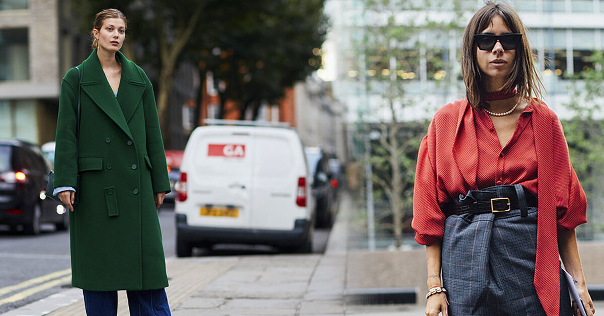 Серый твид, пальто в клетку, тренчи, кеды и авоськи на улицах Лондона