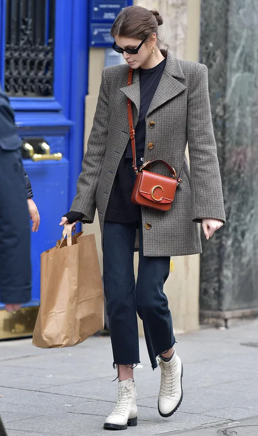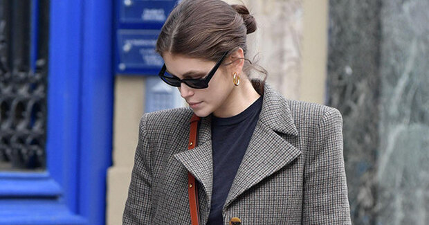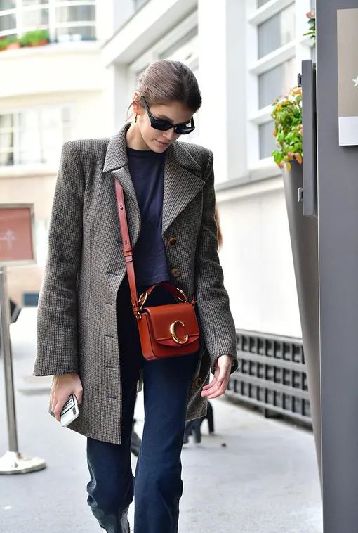 Широкоплечий блейзер в духе Saint Laurent и it-bag Chloé: Кайя Гербер в Париже