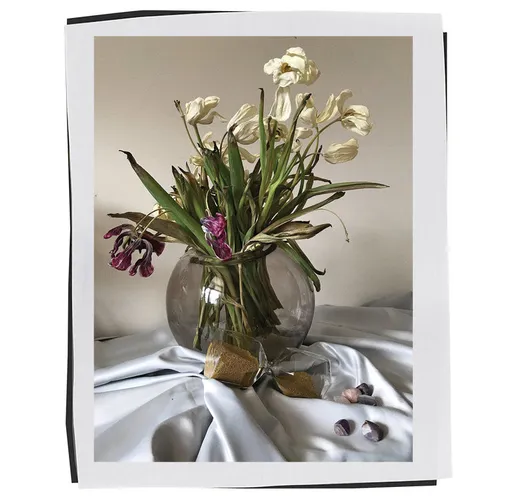Я часто делаю сет-дизайн для наших съемок, здесь светильник из IKEA трансформировался в футуристичную вазу. По-моему, вышло интересно!