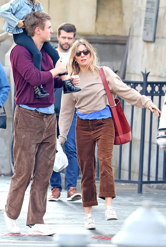 Не так давно стало известно, что у Сиенны Миллер новый роман. Оказалось, актриса встречается с арт-дилером Лукасом Цвирнером на 10 лет моложе себя. Но разница в возрасте влюбленных совсем не волнует: рядом друг с другом они выглядят очень гармонично. И даже одеваются в похожие вещи! Например, 5 февраля папарацци застали парочку на прогулке по Нью-Йорку в почти одинаковых вельветовых брюках, уютных джемперах и белых кедах. Сиенна также дополнила образ беретом в французском стиле и алой кожаной сумкой-мешком.