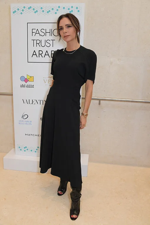 Любой офисный образ можно быстро превратить в вечерний, если добавить к нему акцентные туфли. Виктория явно неравнодушна к ярким лодочкам и сапогам-чулкам с открытым мысом — последние она носит в любую погоду и по любому случаю. И даже классическое сочетание «светлый верх — темный низ» получает богемное звучание в дуэте с парой туфель в оттенке фуксии.