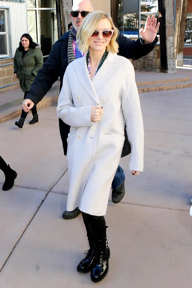 Светлое пальто и кожаные скинни — эффектное комбо на зиму от Наоми Уоттс