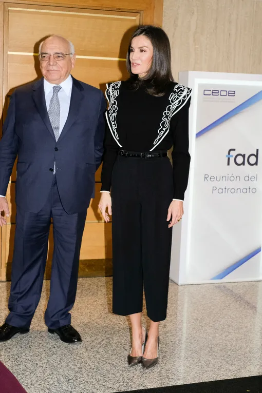 Свитер с вышивкой и кюлоты: деловой образ королевы Летиции