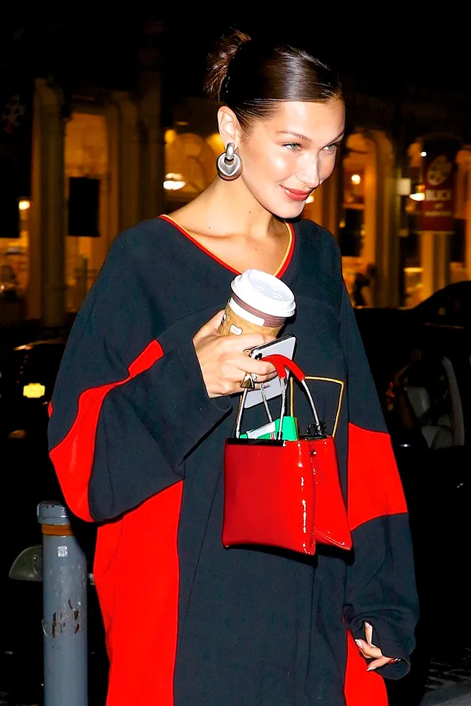 Белла Хадид давно не появлялась на публике. Супермодель занята сердечными делами: она возобновила отношения со своим бывшим возлюбленным The Weeknd и отправилась в отпуск в Токио. Фотографы поймали светящуюся от счастья девушку в Нью-Йорке. Вместо платья на ней был объемный свитшот (The Weeknd, это твой?), мюли на небольшом каблуке и красная сумочка.