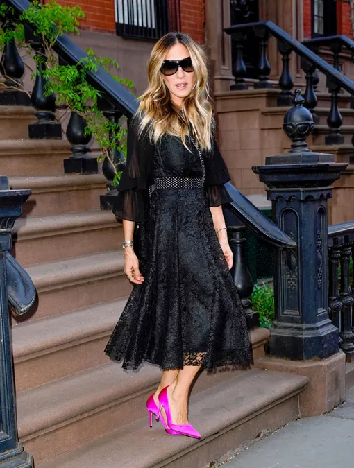 Типичная Кэрри Брэдшоу: Сара Джессика Паркер преобразила черное платье яркими лодочками