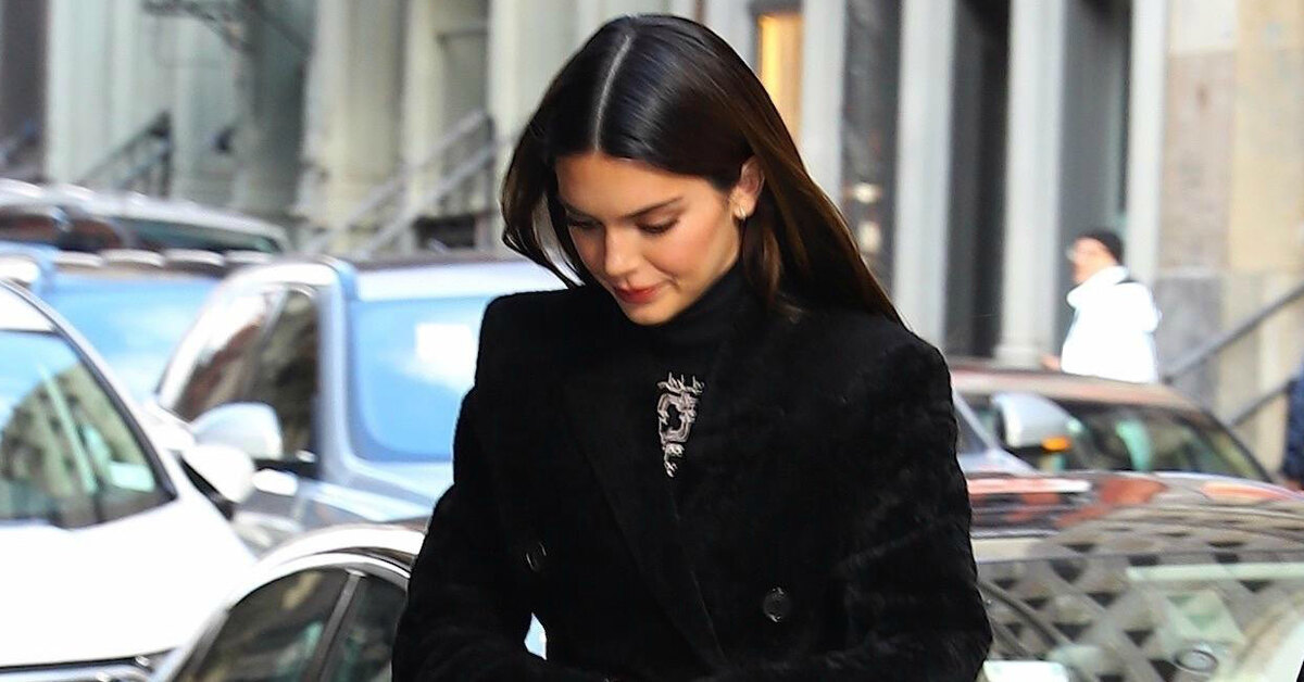 Кендалл выбрала длинную вельветовую шубу Balenciaga в базовом черном оттенке. Брюнетка надела водолазку в оттенке «полуночный синий» и атласные пижамные брюки благородного синего цвета. Финальным штрихом всего ансамбля стали черные кеды Converse и кожаная сумка Burberry на серебряной цепочке.