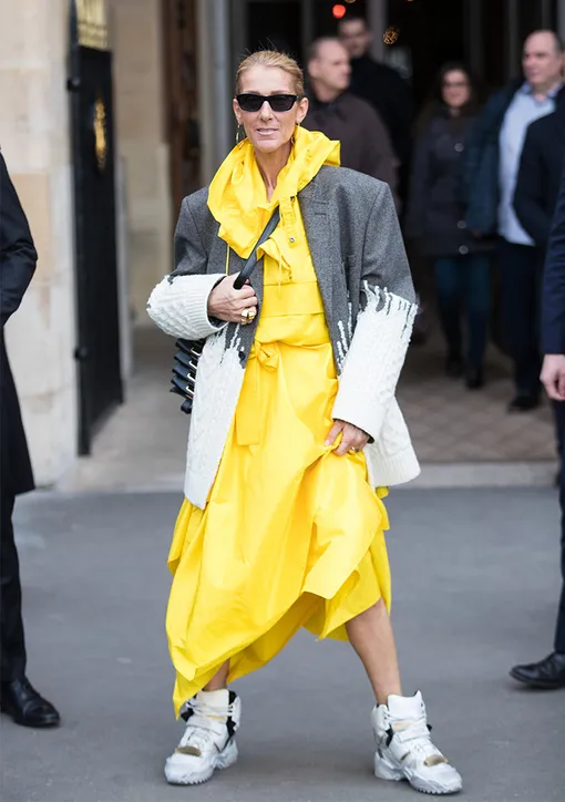 Селин Дион продолжает радовать окружающих своими эксцентричными образами. Казалось бы, певице уже сложно будет удивить поклонников, однако она нашла способ взбудоражить общественность. Новый наряд исполнительницы превзошел все ожидания: папарацци застали ее на улицах Парижа в тотал-луке Maison Margiela. На звезде были ярко-желтое мешковатое платье из тафты, высокие белые кроссовки и жакет с объемными подплечниками и «вязаными» рукавами. Фанатов такой вид артистки, мягко говоря, удивил. Чего же нам ждать от Селин дальше?
