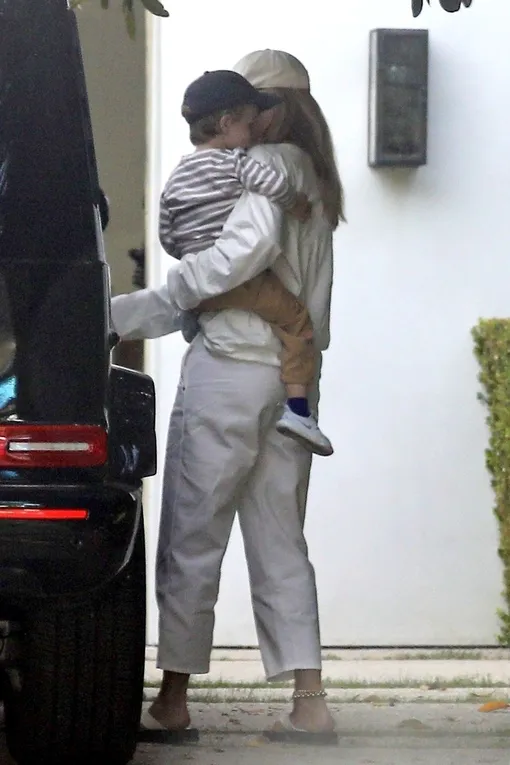 Роузи держала на руках сына Джека: мальчику этим летом исполнится три года. Малыш тоже был одет в повседневном стиле, а от калифорнийского солнца его защищала синяя бейсболка.
