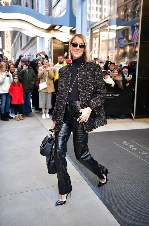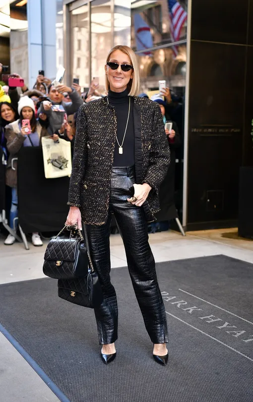 Кожаные брюки, твидовый жакет и две сумки Chanel: все лучшее сразу в наряде Селин Дион