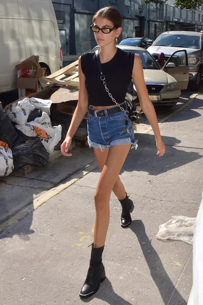 В очках Chanel и джинсовых мини-шортах: Кайя Гербер готовится к Неделе моды в Нью-Йорке