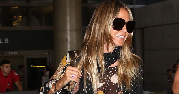 Вьетнамки и платье поверх джинсов: Хайди Клум в аэропорту Лос-Анджелеса