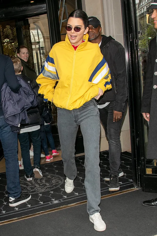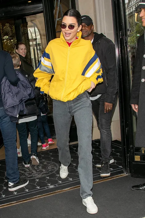 Несмотря на то, что Кендалл Дженнер родилась в 1995 году, ее явно вдохновляет эпоха 1980-х. Иначе как объяснить, что даже в Париже модель отправляется на прогулку не в пышных полупрозрачных платьях и кокетливом берете, а в ярко-желтой ветровке Balenciaga с контрастными полосами на пышных рукавах. Лет 30 назад ровесницы Кендалл многое отдали бы за эту деталь гардероба!