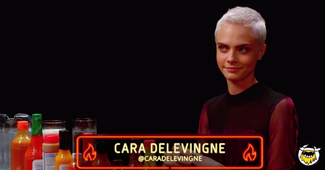 Кара Делевинь стала последней героиней популярного американского ТВ-шоу Шона Эванса «Горячие штучки» (Hot Ones). Название отображает концепцию: общаясь, гость и ведущий поедают куриные крылышки барбекю с самыми острыми соусами из существующих в мире.