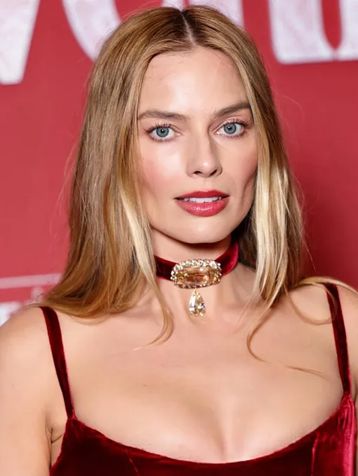 На премьере в Лос-Анджелесе Марго появилась в пышном кастомном платье-бандо Schiaparelli. Такую же модель, только с синим подолом, за несколько дней до премьеры Дэниэл Роузберри представил в рамках кутюрной Недели моды в Париже. Как обычно, дьявол в деталях. На шее у актрисы было замечено украшение кинодивы двадцатого века Элизабет Тейлор, которое ей подарил Ричард Бертон в 1972 году. До того, как попасть в руки Cartier, кулон «Тадж Махал» принадлежал жене императора Нур-Яхан. На индийском алмазе XVIII века красовалась гравировка со словами «любовь вечна».