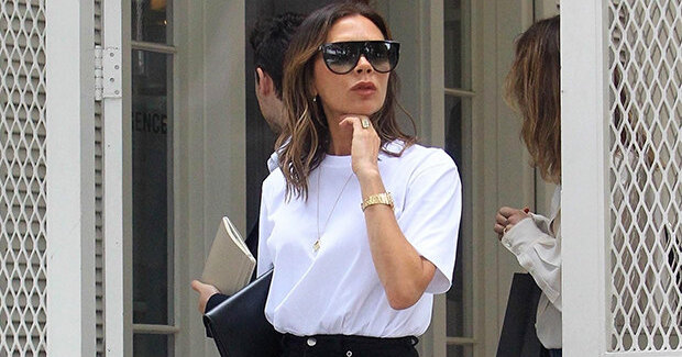 Несмотря на любовь к минимализму и монохромным образам, Виктория Бекхэм явно неравнодушна к ярким оттенкам. Мы не раз видели дизайнера в алом тотал-луке, а недавно в ее коллекцию акцентных вещей добавились лодочки неоново-салатового оттенка. Вики приглянулась модель от Balenciaga, и мы уже любовались на Бекхэм в этих туфлях в конце мая, хотя обычно фэшиониста выходит в свет в обуви из собственных коллекций. Сложную трендовую пару Виктория мастерски вписала в повседневный образ, приглушив яркий оттенок классической белой футболкой, черными джинсами с подворотами и лаконичными солнцезащитными очками Celine.