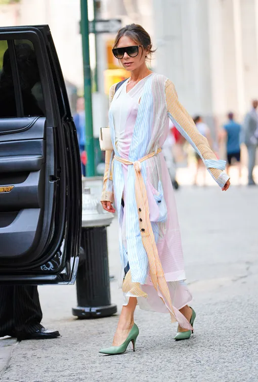 Виктория Бекхэм в идеальном летнем платье и зеленых лодочках в Нью-Йорке