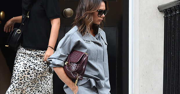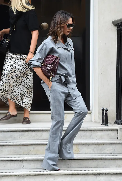 Виктория Бекхэм в сером oversize-костюме, который идеально подойдет для офисных будней