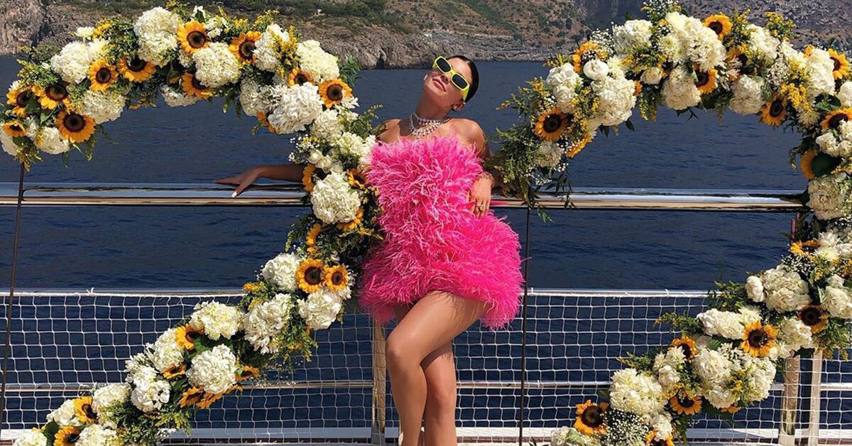 Самая молодая миллиардерша в мире Кайли Дженнер отметила свой 22-й день рождения в кругу семьи и близких в Италии. Для торжества звезда Instagram (Социальная сеть признана экстремистской и запрещена на территории Российской Федерации) выбрала наряды, соответствующие настроению: воздушные платья, полностью расшитые перьями. Днем — ярко-розовое пышное мини от The Attico, дополненное объемным ожерельем с логотипом ее косметической марки, а вечером — летящее кремовое платье с асимметричным низом от Oscar de la Renta. Кажется, в свой день рождения Кайли была окрылена любовью и счастьем (в прямом и переносном смысле слова).