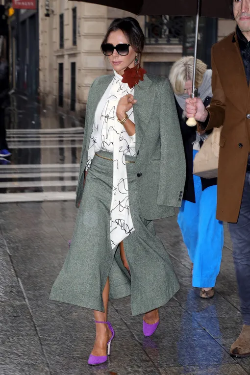 За окном ноябрь, а Виктория Бекхэм — в юбке с разрезами и открытых туфлях