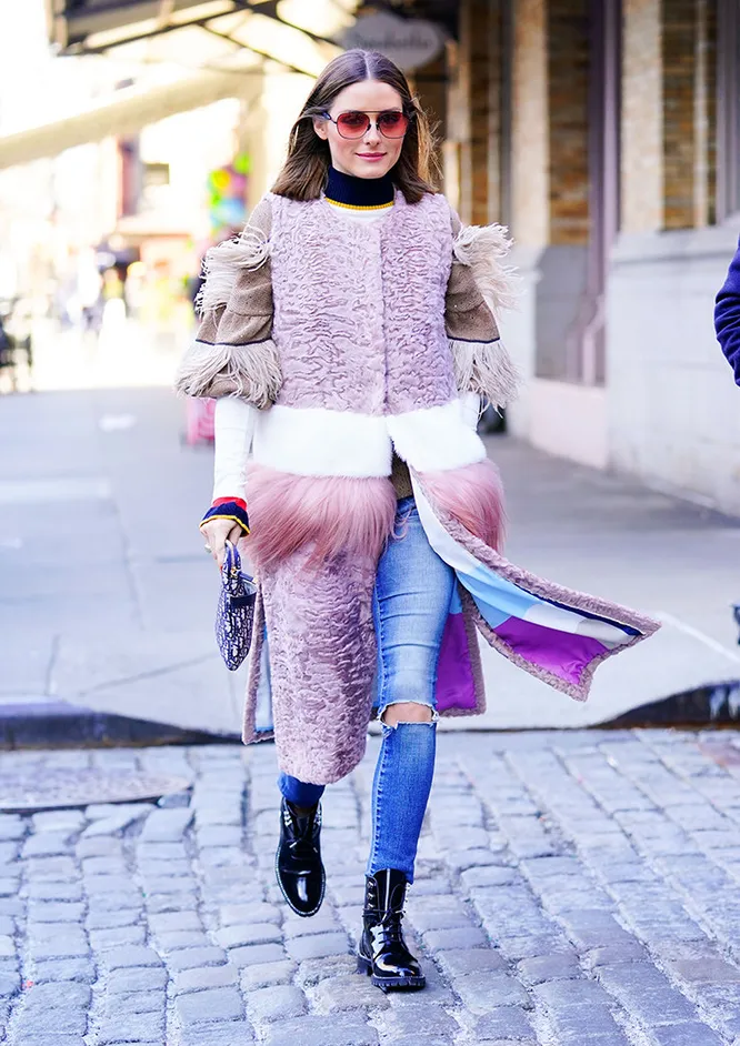 Оливия Палермо справилась с этой задачей на ура: дизайнер и признанная икона стиля отправилась на прогулку с братом Дугласом в необычном розовом пальто, собранном в причудливой лоскутной технике и украшенном бахромой и меховой опушкой. Даже яркая и разноцветная подкладка пальто работала на общий эффект, привлекая внимание во время порывов весеннего ветра и открывая стройные ноги нашей героини в джинсах с разрезами и черных грубых ботинках из лаковой кожи. А завершали образ большие розовые очки, в которых так приятно ждать наступления весны и верить только в лучшее.