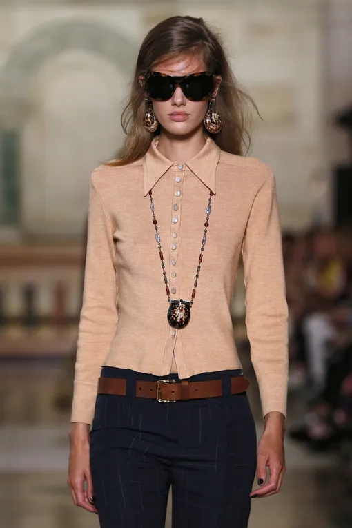 Украшения с наивным настроением, словно позаимствованные из детской шкатулки, сохраняют популярность и развиваются в более сложных формах. Бисероплетение стало полем для экспериментов как для брендов, давно работающих с этой эстетикой, так и для домов, ранее далеких от подобных решений. Tory Burch, Chanel, Celine и Zankov при участии Isabel Marant объединили бисер с кристаллами, жемчугом, ракушками, муранским стеклом и эмалью. Разные материалы складываются в эклектичные композиции с характером. Главным героем сезона становится ожерелье. Celine предлагает многослойные бусы в насыщенной палитре, где оттенки красиво переплетаются между собой. А у Tory Burch внимание притягивают длинные подвески. Серьги также поддерживают тренд на выразительность: Celine демонстрирует вытянутые формы, а Chanel делает ставку на кисточки из бисера. Интересно, что под бисером дизайнеры подразумевают не только мелкие декоративные бусины: бренды активно используют и более крупные детали разных форм и размеров.
