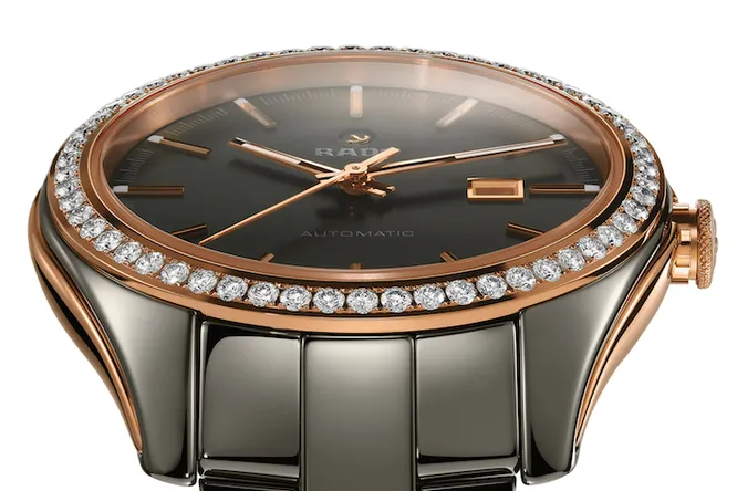 Процесс плазменной обработки мастера положили в основу создания 600 новых моделей, украсили каждую 56 бриллиантами, а безель изготовили из розового золота. В итоге получились универсальные часы Rado, подходящие как для офисных будней, так и для вечернего выхода в свет.