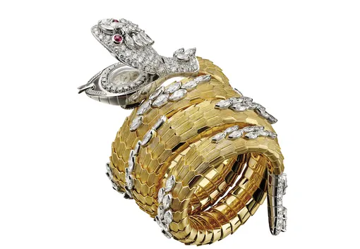 Наблюдать за эволюцией стиля Bvlgari и появлением в коллекции бренда новых «видов» стоит своими глазами. Особенно если выставку главных изобретений, повлиявших на историю ювелирного искусства, представляет только что открывшийся бутик Дома. Подборка эпохальных изделий начинается с броши 1966 года из платины и бриллиантов с кабошонами рубинов, изумрудов и сапфиров, продолжается украшениями со старинными монетами, вечерней сумочкой Melone, часами-браслетами Serpenti...