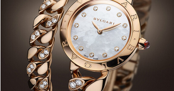 Новинка Bvlgari примечательна прежде всего своим браслетом: элегантная цепь из розового золота, дважды обвивающая запястье, усеяна аж 60 бриллиантами общим весом два с половиной карата. Эти же камни появляются на перламутровом циферблате Catene – здесь их уже 12, по одному на каждый час. С таким украшением время и впрямь становится драгоценным!
