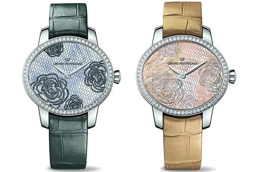 Часы Cat’s Eye Bloom целиком и полностью посвящены пионам. Именно они «расцвели» на перламутровом циферблате, причем каждый орнамент был нанесен в семь тончайших слоев – такая необычная технология позволяет добиться трехмерного эффекта. Корпус Cat’s Eye Bloom выполнен из стали, которая, впрочем, совсем не «спорит» с нежной концепцией часов, а, напротив, отлично сочетается с ободком циферблата, усыпанным 64 бриллиантами классической огранки, а также с ремешком из крокодиловой кожи. Оценить новинку можно будет совсем скоро: Cat’s Eye Bloom появятся в московских бутиках Girard-Perregaux уже через несколько дней.