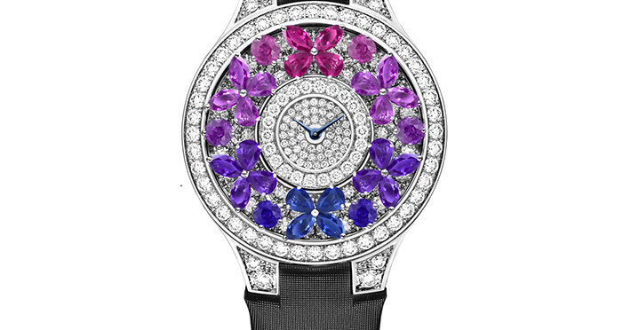 Часы Rainbow Butterfly, как видно из названия, посвящены бабочкам – именно их изображениями мастера Дома украсили циферблат. Сделать новинку максимально эффектной британцам помогли разноцветные сапфиры, обрамленные бриллиантами: благодаря им Rainbow Butterfly переливаются чуть ли не всеми цветами радуги. Ну а усиливает впечатление атласный ремешок и застежка, также усыпанная несколькими десятками драгоценных камней. Модель, представленная в корпусе из белого золота, выпущена строго ограниченным тиражом – всего 300 экземпляров.