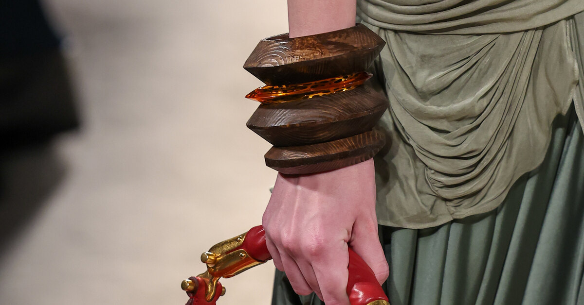 Что предлагают дизайнеры в сезоне весна-лето 2026? Самые разные вариации крупных украшений: по большому счету, трендовые браслеты объединяет только размер. Взгляните на симметричные браслеты-диски авторства Матье Блази, которые дизайнер представил в рамках своей дебютной коллекции Chanel, — такие украшения станут отличным финальным штрихом в повседневном комплекте. Эту же тему гармонии продолжают Ferragamo — геометрические модели из пластика предлагается носить сразу же на двух руках. Судя по всему, тема геометрии правит бал во многих модных Домах — и это отличный шанс «упорядочить» визуальный язык образа и правильно расставить в нем акценты. Как минимум, с нами согласны Zankov, Ashlyn и Balmain.