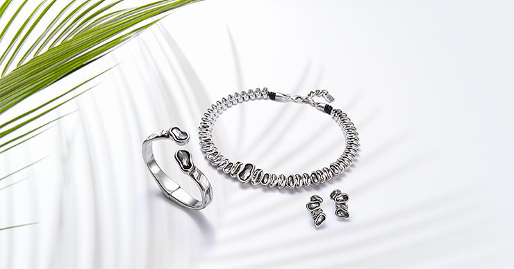 В своей новой коллекции с говорящим названием Wild Instinct испанские ювелиры UNOde50 обращаются к теме дикой природы: с помощью гравировки воссоздают в металле и кристаллах Swarovski паттерн, повторяющий чешуйчатую фактуру кожи рептилий. Мастера обвивают хрупкие запястья браслетами-змеями, украшают массивные перстни крупным зеленым кристаллом - изумрудным «глазом аллигатора» и нанизывают на цепочку трофейные графитовые клыки.