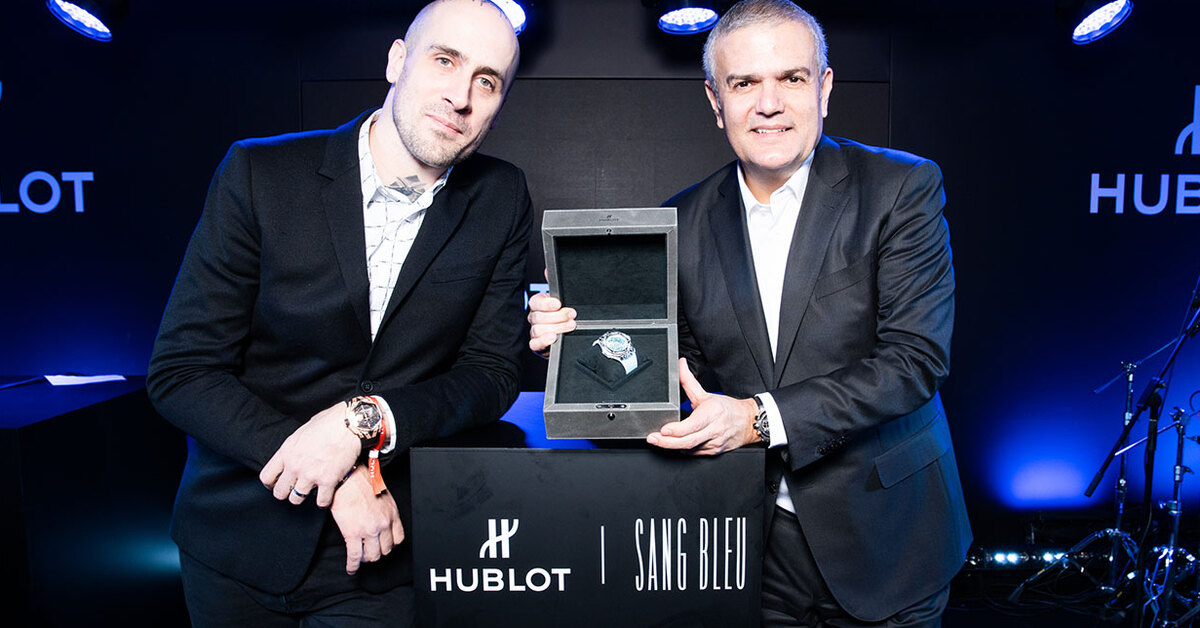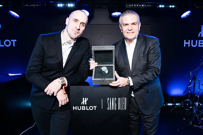 Максим Плесчиа-Буши, основатель дизайн-студии Sang Bleu и легендарный тату-художник, вместе с СЕО Hublot Рикардо Гваделупе представил в Москве специальную лимитированную коллекцию часов Hublot Big Bang. Новая вариация знаковой модели, получившая название Big Bang Sang Bleu, создана специально для российского рынка всего в 50 экземплярах.