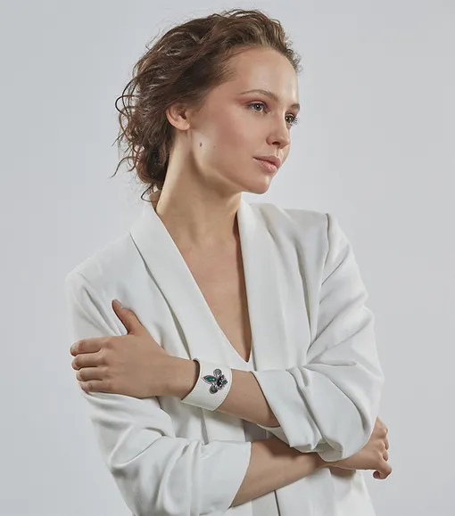 Все украшения GFase вручную собираются во Флоренции. В работе Ева Мария Солнцева и ее команда используют самые разные материалы: серебро 925 пробы, драгоценные и полудрагоценные камни и даже кожу. В Москве познакомиться с изделиями марки, рассмотрев их во всех деталях, можно в ЦУМе.