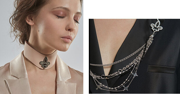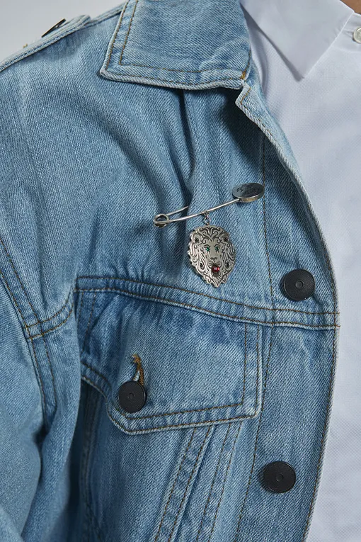 Черный костюм свободного кроя играет совершенно по-новому с закрепленной на лацканах многослойной цепью, а браслет с геральдической лилией и изумрудами «оживляет» белый жакет. Даже простая джинсовая куртка, стоит добавить к ней брошь-булавку с изображением льва, преображается. Одна яркая деталь – и общее настроение тут же меняется.