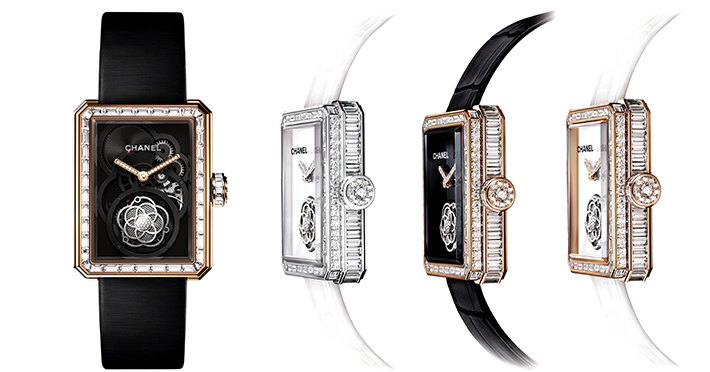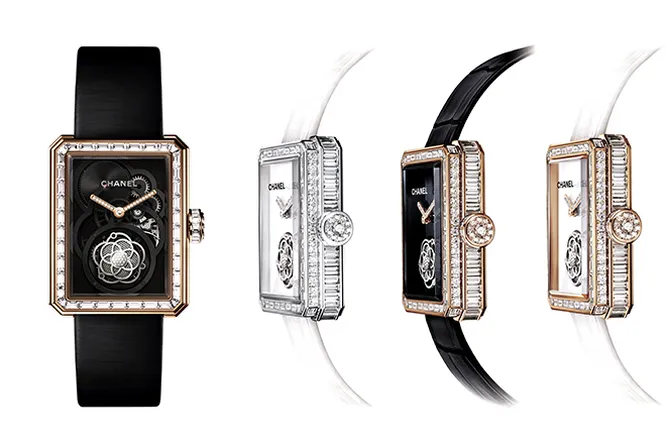 Летнюю премьеру Chanel Joaillerie невозможно пропустить: хронографы Première Flying Tourbillon завораживают с первого взгляда. Все благодаря парящему турбийону: его изящные переплетения повторяют очертания камелии, которой украшен прямоугольный циферблат. Этот «вихревой» механизм настолько же точен и сложен в исполнении, насколько красив, но ювелирно-часовая линия Chanel может позволить себе и то, и другое. Механическая конструкция из 76 (!) деталей изготавливается специально для коллекции Première на старинной швейцарской мануфактуре Renaud et Papi.