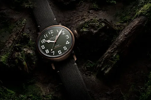 Pilot Type 20 Chronograph Adventure – потомок надежных бортовых инструментов, которые Zenith разрабатывали еще на заре авиации. Модель XXI века предназначена уже не только для летчиков, но и просто для ценителей часового искусства и стильных аксессуаров. Обе новинки с бронзовым корпусом и автоматическим калибром Zenith Elite 679 (он дает 50-часовой запас хода) отличает широкая рифленая заводная головка, отсылающая к дизайну бортового снаряжения, а гравировка Zenith Flying Instruments на задней крышке отдает дань уважения новаторским часам-предшественникам. Символы на циферблате цвета хаки сделаны из люминесцентного материала SuperLuminova, так что он будет виден всегда. Осталось выбрать ремешок: его Zenith выпустили из кожи аллигатора с камуфляжным принтом и из телячьей кожи выделки matrix цвета хаки. В обоих случаях ценный материал защищен каучуковой подкладкой и классической титановой застежкой – все для того, чтобы Pilot Type 20 Chronograph Adventure стал незаменимым аксессуаром в любых приключениях.
