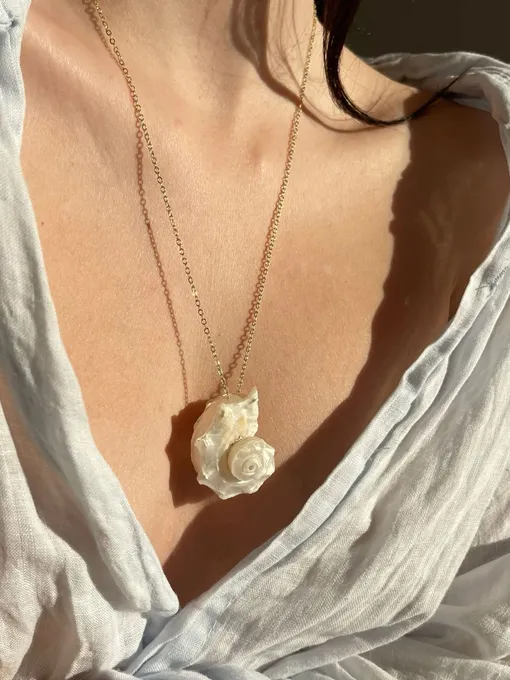 Этот аксессуар словно впитал в себя все прелести летнего отдыха: детскую наивность, легкость, романтику — завидную универсальность. Такие вариации подаются очень тонко: это может быть всего одна раковина на шнурке или деликатной цепочке, инкрустированное перламутром и натуральными элементами. Также обратите внимание на золотые или серебряные вариации, лишь имитирующие раковины. Или можно комбинировать оба металла — «модный запрет» на это сочетание давно остался в прошлом. Как стилизовать такую подвеску? Она идеально смотрится как с пляжными образами (на фоне купальника и платья в технике кроше), так и с городскими луками: с рубашкой и брюками или с шелковой комбинацией. А для вечернего выхода дополните ей топ-бандо и джинсы. Если вам хочется усилить морской акцент, сочетайте ожерелье с другими вариантами в том же духе, но важно соблюдать меру: лучше один акцент, чем перегруженный аутфит. А самые красивые варианты вы найдете в галерее ниже.