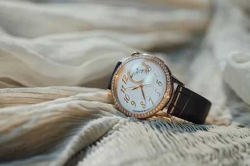 А еще в них воплощены важные для Vacheron Constantin идеи. С французского Égérie переводится как «муза» – та, что является источником вдохновения для художников, поэтов и, конечно, часовых дизайнеров. Этим названием мастера подчеркивают тонкую связь между миром часового искусства и искусством в самом широком смысле слова. Между предельной точностью хода часов и отточенными движениями портного. Гофрированный узор циферблата напоминает изящно задрапированную ткань – такое ощущение, будто над его оформлением не один месяц трудились в кутюрном ателье. Этот эффект усиливают часовая и минутная стрелки – они похожи на две золотые булавки, находящиеся в постоянном движении. Каллиграфический дизайн цифр, специально разработанный для коллекции, можно принять за вышивку, а традиционное для марки асимметричное положение индикатора даты или фаз Луны – он размещен по диагонали, на отметках 1 и 2 часов, – вызывает ассоциации с асимметричным кроем роскошного вечернего платья.