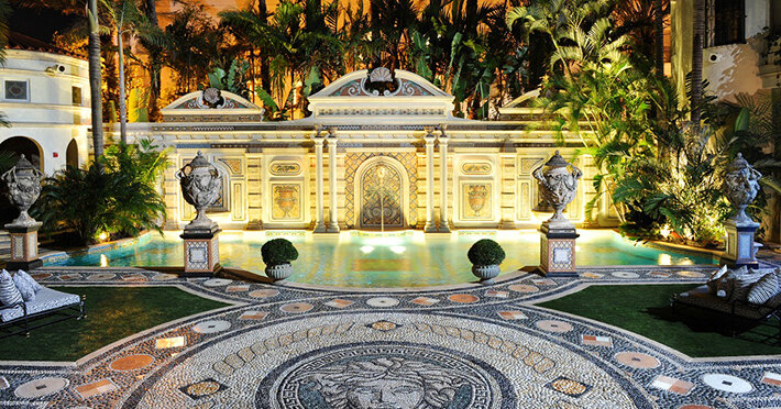 Совсем по-другому представлял свою идеальную резиденцию Джанни Версаче: знаменитая вилла Casa Casuarina, как и все творения итальянского дизайнера, стала красноречивым символом бурных 1990-х и воплощением сибаритской эстетики Майами-бич. Версаче приобрел этот дом в 1992 году за $10 миллионов долларов и потратил втрое больше на его перестройку. Сверкающая мозаика, позолоченное дерево, барочные орнаменты и дорогой итальянский текстиль –буйная дизайнерская фантазия не знала предела, и помпезный интерьер дома вызывал немало насмешек среди современников кутюрье. Тем не менее, друзья Версаче с удовольствием принимали приглашение на виллу, а dolce vita с американским размахом задавала тон всем состоятельным соседям на побережье. К сожалению, Casa Casuarina прославилась как место трагической кончины Версаче: 50-летний дизайнер был застрелен на пороге собственного дома в 1997 году. Несколько лет спустя виллу переделали под отель.