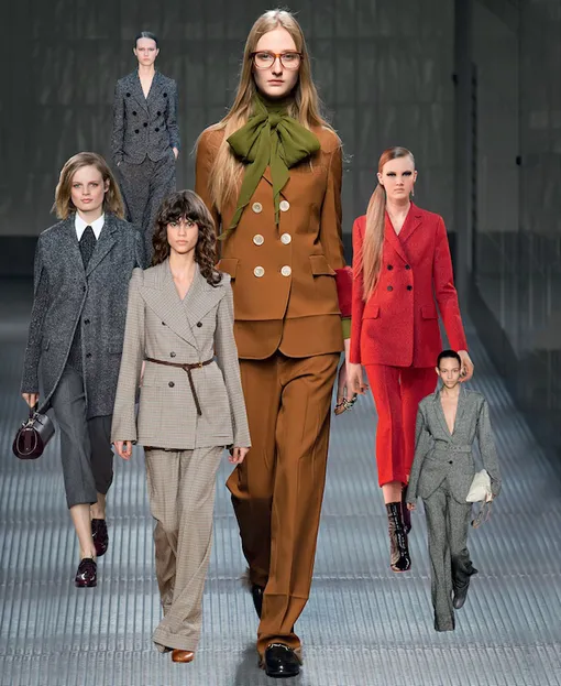 Гавроши и томбои родом из прошлых сезонов выросли, но от вещей из мужского гардероба не отказались. Главным «заимствованием» этой осени стал костюм с широкими брюками – закрывающими обувь или, наоборот, укороченными, до середины икры.