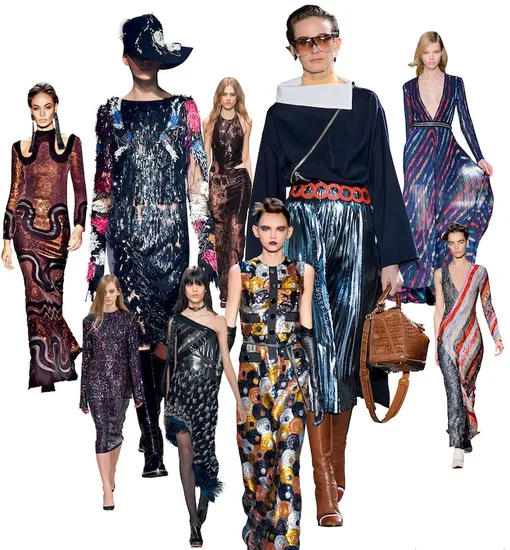 А чтобы мало не показалось – еще и люрекс. Задача сформулирована предельно просто – любыми способами добиться ослепительного блеска. А дальше решайте сами: приглушить сияние вещами из более спокойных материалов или добавить драматичных акцентов и отправиться на вечеринку в духе Studio 54.