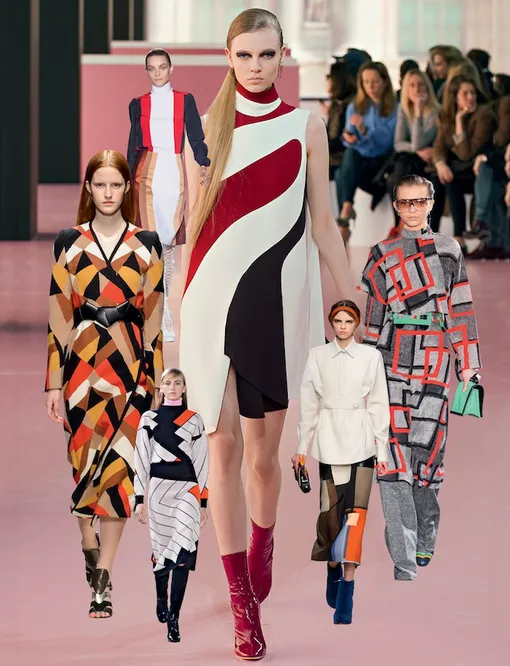 От строгой череды цветовых блоков дизайнеры уходят в сторону художественного беспорядка. Поклонницам кубизма и супрематизма советуем присмотреться к коллекциям Fendi, Jil Sander и Loewe.
