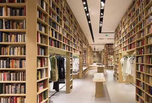 Невероятно красочный декор из тысяч книг, завезенных во флагманский бутик Sonia Rykiel на Бульваре Сен-Жермен к показу осенне-зимней коллекции, руководство Дома решило оставить как минимум еще на один сезон. Колоритное пространство, созданное креативным директором Жюли де Либран вместе с арт-директором и издателем Томасом Лентальи, а также художником Андре Сарайва, превратилось в литературное кафе с характерным флером шестого округа Парижа.