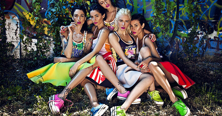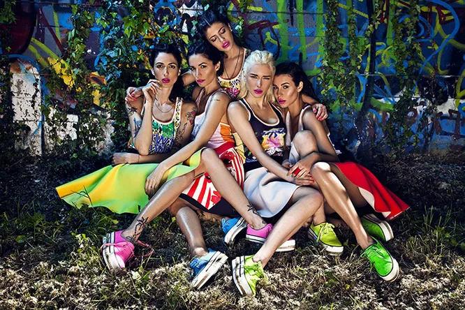 В новой коллекции Патриция Бамби объединила спортивные мотивы и яркие рисунки. Перфорированные топы с анималистскими и растительными принтами, короткие шорты, расклешенные мини-юбки, бейсболки и кеды – именно так креативный директор Patrizia Pepe представляет себе гардероб жизнерадостной и активной жительницы мегаполиса. Если же вы пока не готовы отказаться от привычных шпилек, добавьте к женственным босоножкам плотные носки – а в качестве примера возьмите фотографии из рекламной кампании. Героинями съемки стали пять девушек, которые отлично ориентируются в городских джунглях. Примечательно, что далеко не все из них профессиональные модели: как оказалось, скейтерши и писательницы смотрятся в кадре ничуть не хуже звезд подиума!